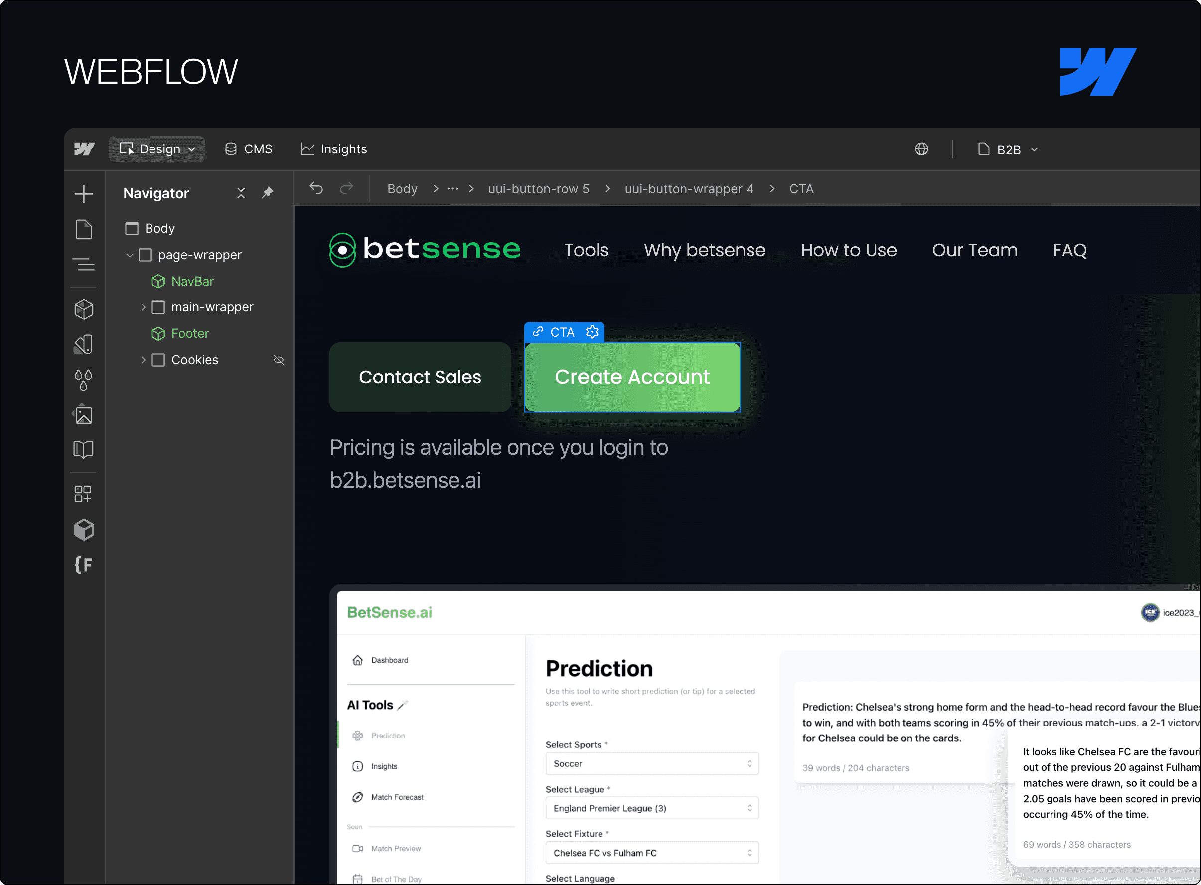 We applied our signature development methodology to create BetSense.ai, demonstrating the power of strategic no-code integration with custom architecture and AI models.